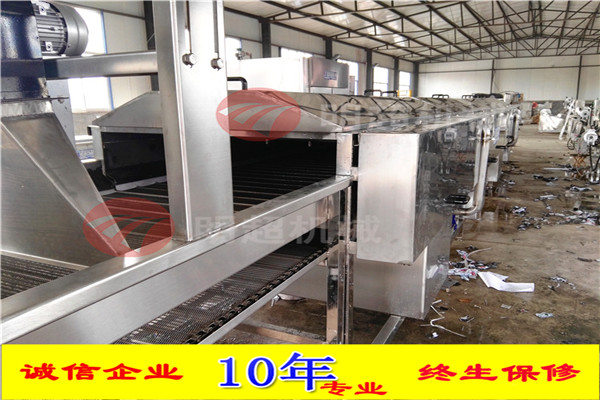 蒜苗清洗機主要是通過蓄水池,無縫鋼管,高壓水泵,網帶組成,首先要將蓄水池里面加滿水,然后通過高壓水泵無縫鋼管輸送到噴淋管道里面,經過網帶往前輸送,直達噴淋管道進行沖洗,采用上下噴淋的方式,在不損傷表皮的情況下,將蒜苗清洗干凈,泥沙再次經過下水口,直接回收到蓄水池里面,雜質和泥沙隨著水流截留在蓄水池上面的過濾裝置上面,蓄水池一共兩個,當蓄水滿事,可通過水泵進入到另一個蓄水池里面,防止水溢出,也可根據客戶的需求,量身定制設備。